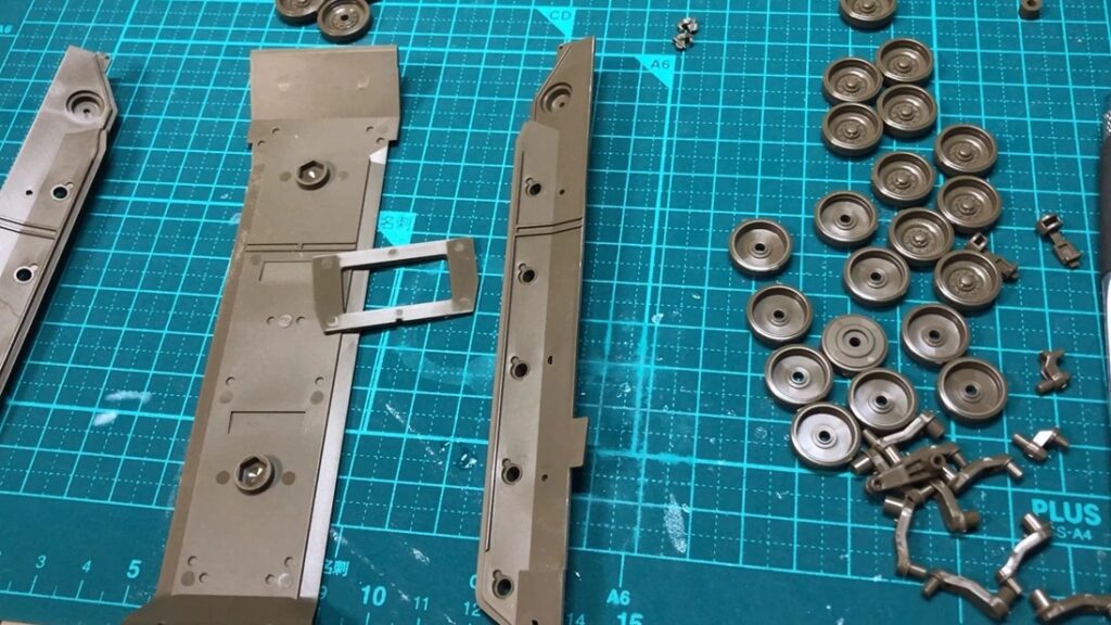 転輪やサスペンションは精密な設計で、履帯は一体成型タイプ。