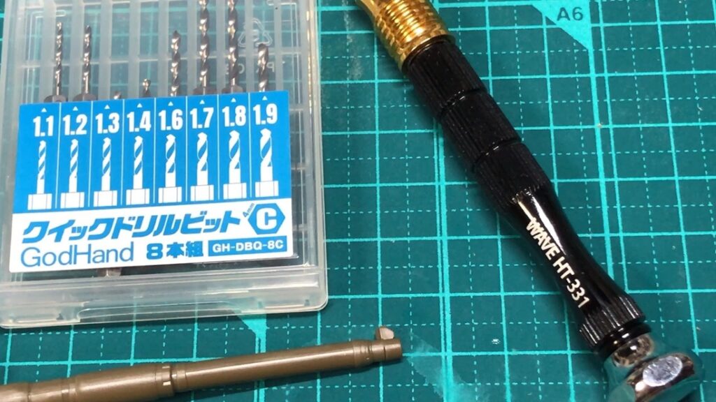 ゴッドハンド「クイックドリルビット」とwave「ワンタッチピンバイス」を使用。
